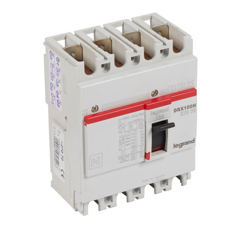 Главная → Каталог товаров → Оборудование низковольтное → Выключатель автоматический силовой → Выключатель авт. 4п 15А DRX125 термомагнитный 36кА Leg 027070